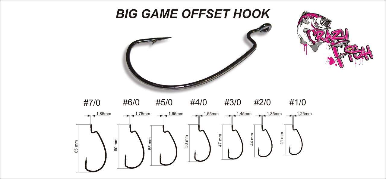 Big Game Offset hook - extrémě pevný a ostrý háček použitelný pro ty největší nástrahy a úlovky.